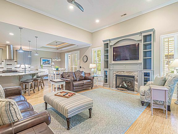 GORGEOUS!! That is what you will say after viewing this beautiful custom built all brick home with stone accent in Surf Estates. From the minute you walk in the front door you will see that not a detail was left out in designing this 3 bedroom, 2 1/2 bath home! Twelve foot ceilings in the spacious living room with custom fireplace. Open floor plan to the magnificent kitchen with granite countertops, custom cabinets, upscale stainless appliances, dual fuel range, two ovens, breakfast bar and adjoining breakfast nook make for the perfect place to entertain family and friends. Split bedroom plan with two spacious bedrooms and bath on one end and master suite on the other. You will love the master bedroom with triple tray ceiling! Master bath with large walk-in shower, double vanities and soaking tub. The laundry room with a sink is located in the ideal place off the master bath. Splendid hardwood flooring throughout with tile in the wet areas. Upgraded LED lighting, ceiling fans, faucets and Plantation Shutters throughout. Stairs in the hall going up to unfinished storage that could be converted to another room. Three car garage that is every man's dream with abundant storage cabinets. Screened-in porch off the living room is a great place to enjoy your morning coffee and evening beverage. Gas Grille on patio off Kitchen for outdoor grilling and an outdoor shower. This home is located just a short golf cart ride or walk to the beautiful beach. Shopping and restaurants are also just a golf cart ride away. This is a must see in the desirable Surf Estates community! You will want to make this one your home!