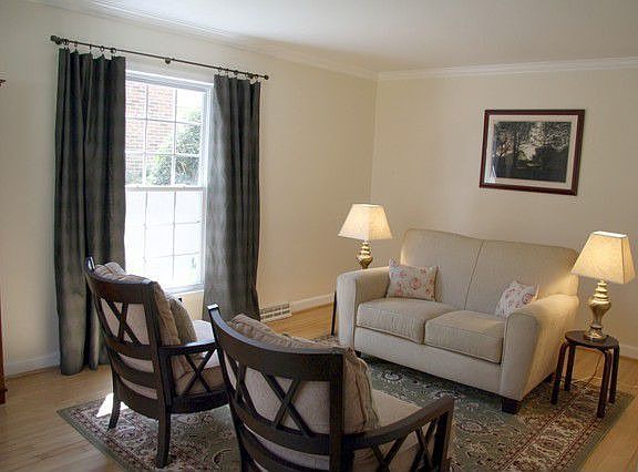 Hardwoods throughout. Dining room with chair rail & crown molding. Tiled fireplace and decorative wood ceiling in Den. Granite counters, gas stove, double SS sink in kitchen. Wainscoting in breakfast area. Tiled sunroom w/vaulted ceiling, beams and skylights overlooking huge deck and private backyard. Spacious bedrooms, master has window seat and walk in closet. Fresh paint inside and out. Too many closets throughout to count.