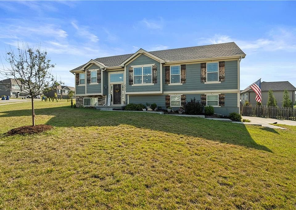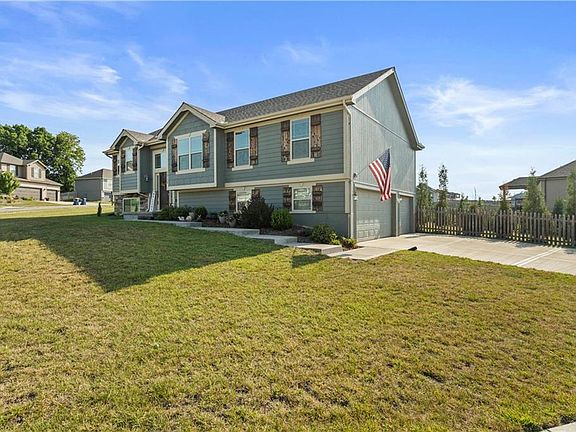 Under contingent contract with 2 day kick out option - not contingent showings and offers welcomed. Listing will be updated when the contingency is removed. This stunning split entry home, located on a corner lot in the Cottonwood Creek subdivision within the highly sought-after Kearney School District, offers 4 bedrooms, 3 bathrooms, and a spacious 3-car garage. As you walk in, the main floor welcomes you into the open concept living room, kitchen, and dining area. The living room features a cozy gas fireplace and a walkout to the back deck. The kitchen boasts a large kitchen island, stylish tile backsplash, and a built-in pantry. Conveniently located off the kitchen is the laundry room and the attached dining room. Down the hallway, you'll find two bedrooms, each with walk-in closets, and a full bathroom. The primary bedroom is also on the main floor, featuring an en-suite bathroom with double vanities and a large walk-in closet. The lower level offers additional living space, another bedroom, a full bathroom, a storage closet, and a utility closet. You'll also find easy access to the spacious three-car garage from the lower level. Garden right outside of fence does belong to this property. Residents of the neighborhood also have access to enjoy the community pond, as well!