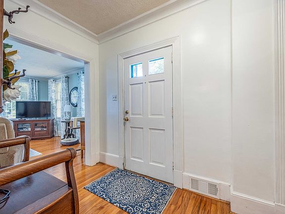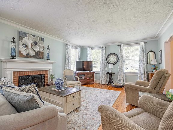 Situated in midtown, this white house with a picket fence boasts a range of appealing features. The back-covered porch offers a view of the fenced backyard, and there is a storage building that was previously a garage. Inside, you'll find original hardwood floors and an updated kitchen equipped with a new dishwasher and microwave. The laundry is conveniently located just off the kitchen. In the great room, there is a gas-log fireplace for keeping cozy during the winter. The split bedroom plan ensures privacy, with one bedroom featuring an ensuite bathroom, while the other bedrooms are located on the opposite side of the home and share a hallway bathroom.