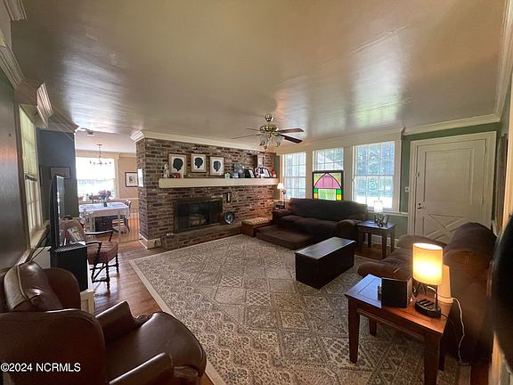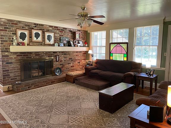 Quaint and homey four bedroom, 2 bath home located in Brentwood Forest! Vinyl and wood floors throughout home, gas log fireplace, eating area, kitchen and living room. New HVAC unit in May 2023. Water heater is 6 years old. Roof is 2 years old! Fenced in backyard, Covered front porch, grilling patio, detached storage building on a 0.53 acre lot.