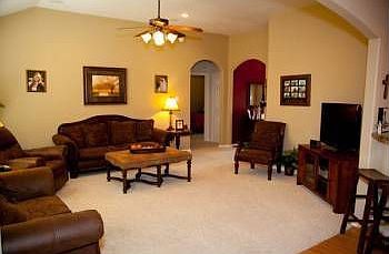 How cute is this? Lake Front!! Large 1/2 acre lot, 18x32 shop, huge patio! 10' ceilings in entry and family, 9' in rest of house. Hardi-plank siding, arched doorways, flex room or 4th bedroom, laundry room with freezer space, master bath with tun and shower, covered front porch, 2 car garage, walk in closets, closets in flex room, linen closets in both baths, 2 hall closets, large pantry, gas heat,ceiling fans, community well. Room sizes are approximate.