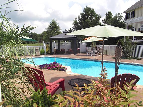 Live like you're on vacation, you've earned it! Elegant touches throughout incl coiffered ceiling in kitchen, new fridge & dishwasher. New windows, UVAire purifying system, 12 yr hot water htr new w/in 3 yrs, Huge master suite, Jack & Jill BA for 2 bdrms & 4th BR w/priv FB. Inground pool boasts waterfall & easy maint, deck w/pergola overlooks pool & perfect 1 acre lot. See Video tour too!