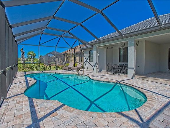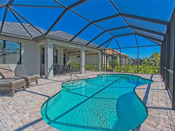 Live the Florida Dream - Stunning Summerwood Floor plan with your own pool out your sliding door! This 2 bedroom plus den, 2 bath home is move in ready. The oversized lanai, open floor plan and an upgraded kitchen, makes entertaining a delight. With a contemporary feel, and 2 years young, this 2 bedroom plus den, 2 bath home is priced to sell. An easy walk to the clubhouse, or a short golf cart ride, you will experience all that a brand new Del Webb,55+ community has to offer. Landscape maintained, plenty of activities, clubs, and a restaurant at your finger tips, close to shopping, golf, and all of Lakewood Ranch, the location can't be beat. The residents' only access lets you be at University Pkwy. in about 6 minutes. Light fixtures, custom mirrors, custom closet finishing in the master bedroom, 8' doors, and the glass front door contribute to the "Welcome Home" you will say when you walk through the front door. Come experience the full Florida Lifestyle here at Del Webb. Residence only entrance makes University Parkway @ 6 minutes away. "Near everything, but away from it all"!!