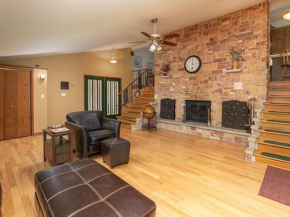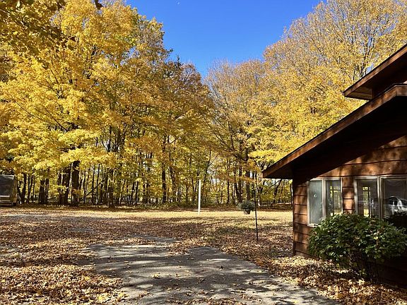Only 20 minutes to Rochester! 10 beautiful acres of woods and tranquility surround this three level home with 4 bedrooms on one level, spectacular family room with floor to ceiling limestone fireplace, hardwood floors and vaulted ceilings that lookout to patio and wooded landscape. Kitchen center island, tile backsplash and sliding doors to large deck off kitchen, lower level boast two more family rooms. One with gas fireplace and French doors to outside and the other with wood fireplace and entrance to huge screen porch. This home also has a 3 car detached garage and in addition a metal carport for boat or camper storage.