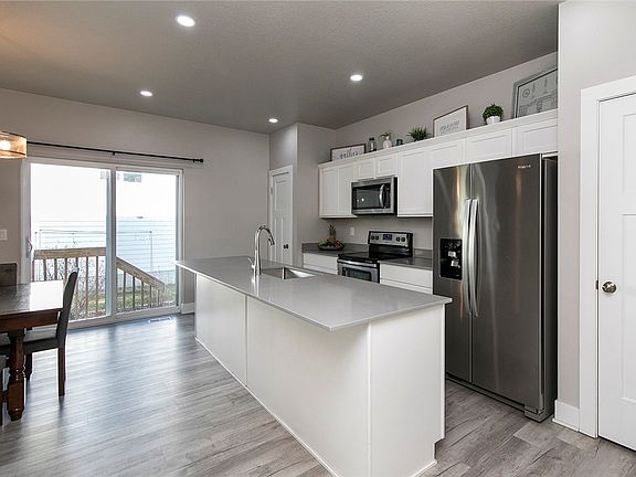Everything to love in this bright and cheery home with a kitchen island that can fit all your friends and family! Or cozy up to the electric fireplace this winter in the open concept kitchen to living area transition. Enjoy 3 bedrooms and two bathrooms on the upper level. You'll love that the laundry room is on the upper level as well... perfect location near bedrooms! The primary bedroom has an ensuite with walk in closet and private bath. Wonderful two story home with plenty of space to spread out and ready for you to add additional value with your own finish in the lower level. All appliances included. Walking distance to Waukee's Radiant Elementary. This one is a must see!