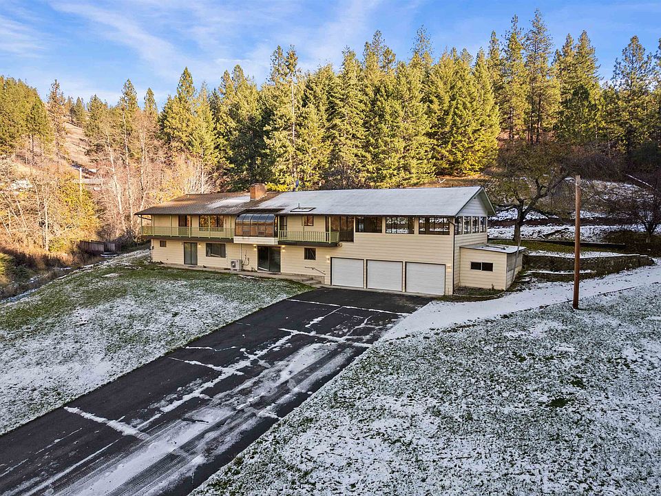 Dreaming of country living? Look no further than this spacious and serene property on 71 acres of land. This 5 bedroom, 2 bathroom home offers plenty of room for your family and guests, with a cozy fireplace on each level, a large open concept kitchen on the main level, and another kitchen area in the basement (plumbed-in and ready for a kitchen/amazing bar for multigenerational living). Enjoy the views of the rolling hills and the wildlife from your windows, or explore the trails on your ATV. The property also features a huge 100' x 30' shop and other outbuildings, perfect for storing your vehicles, tools, and equipment. The shop has electricity, water, and a concrete floor. Plus, the property has a new well pump, new well head casing, new electrical for the water system, new pressure tank and new water line, ensuring a reliable water supply for your home and shop. The location is ideal, with easy access to the highway and a short 10 minute drive to the valley. Don't miss this opportunity!