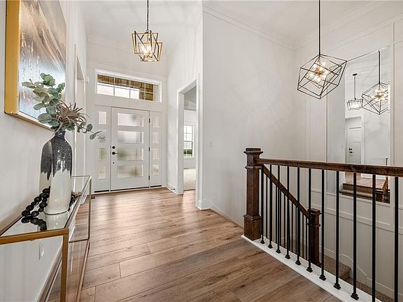 Dreaming of a new home with the ease of main floor living, but don’t want the hassle of going through the new build process? This delightful reverse 1.5 story with walk-out lower level is just 4 years young and loaded with upgrades! You’ll benefit from both the design and functionality details the current owners put into it when building. From the wood trusses and beams on the soaring ceilings to the beautifully durable luxury vinyl plank flooring, no detail was overlooked. The open great room, kitchen and dining layout that steps onto the inviting covered deck create the perfect gathering spaces for friends and family. Gleaming quartz countertops, painted cabinets, 5-burner gas cooktop, upgraded stainless appliances and a huge walk-in pantry are just a few of the things that make the kitchen a chef’s delight. With the primary suite, laundry, and extra bedroom or office on the main level, all of your daily living needs are conveniently located on one floor. Need more space? Head down to the walk-out lower level that features a spacious family room and beautiful wet bar with granite countertops, beverage fridge and microwave. Two additional bedrooms and a full bath round out the finished space. And still plenty of unfinished space for storage. Then mosey outside to an extended patio, fenced backyard with full irrigation system that has been wonderfully landscaped, including some delicious apple and pear trees. This one will capture your heart!