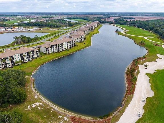Resort Community with custom first floor unit, walk out back to the pond and golf course view, walk down the sidewalk to one of two satellite pools or enjoy the day on the 36 hole Arnold Palmer inspired golf course with a Junior PGA in Feb right out your back door! This custom finished Arbor with open concept living, granite and stainless, crown molding, custom shiplap, accent colors, enclosed exterior storage space, will be super clean and ready to move in on panoramic water/golf view. Plenty of aquatic birds off the lanai and great view of golf course!