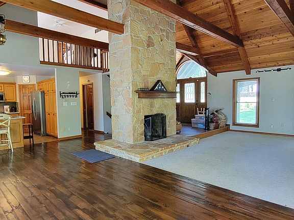 Lovely 3 bdrm 3 bath home with 3 car garage on 1.7 acres in beautiful Pommosa area. The wonderful open floor plan makes for great entertaining space. Truman lake views, stone fireplace, vaulted ceilings & reclaimed wood floors in dining area add to the beauty of this home. Beautiful custom cabinets & granite countertops making cooking a dream. Main floor master bedroom includes jetted tub, walk in shower & double sinks. Second main floor bedroom & bath with laundry. Expansive deck off the dining area make it easy for entertaining after a long day on the lake. Upper level loft with skylights would make a great office or hold several beds for guests. Lower level walk-out boasts of family area with stone fireplace, rec area, 3rd bedroom & full bath. A inground heat pump system to keep those heating & cooling bills low. Detached 3 car garage with studio apartment above has a possibility for extra income. Approximately 2 miles from a boat ramp makes living the lake life easy!