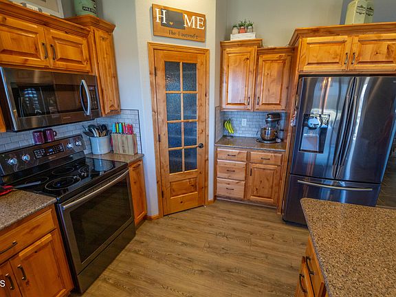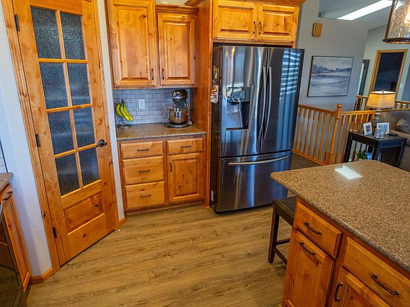 Welcome to this beautiful 5 bedroom 4 bathroom custom ranch style home in south Mandan! This home features 3,305 square feet including 3 bedrooms on the main floor. The main floor also features a completely updated kitchen/living area with beautiful custom cabinets, black stainless appliances, quartz countertops, pantry, new flooring, fireplace, and recessed lighting. The basement features a wet bar for entertaining guests and a sound system in the spacious living area for watching your favorite movie or sporting event. There is also a walkout door to the backyard patio. In the garage, high end cabinets were installed with a counter top and sink for all of your storage and outdoor cooking needs. You can enjoy a morning on the large back deck or an evening on the re-done front porch to catch the perfect weather any time of day. Come and see this well cared for and nicely updated home for yourself!