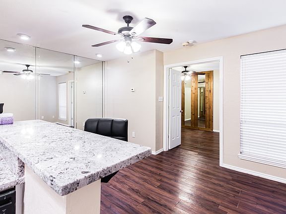 Balcony off bedroomRacquetball court accessCentral airCeiling fansNewer wood plank flooringGranite counters in kitchenCovered parking