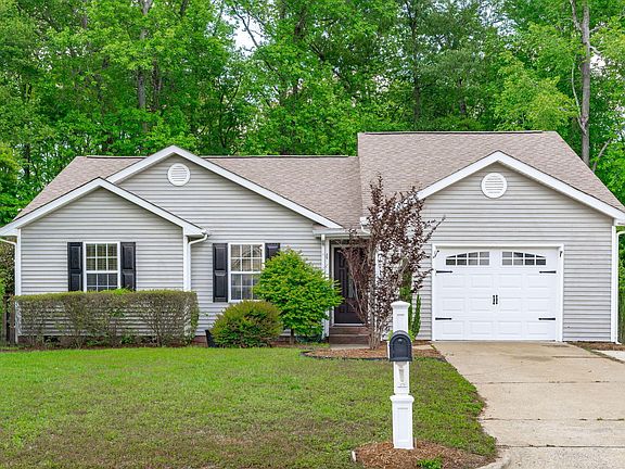 RANCH home, fantastic location and privacy galore on a cul de sac street! This bright open floor plan features 1374 sq ft three beds and two full baths. NEW Carpet, NEW interior paint, and updated light fixtures. Split floor plan lives like a dream. Kitchen features granite countertops and stainless steel appliances. Refrigerator, washer and dryer convey! Updated primary bathroom includes extra storage and stand up tile shower. Step onto the spacious screen porch & overlook your lush garden. Oversized driveway featuring one car garage with gas heater, drywall and ready for your finishing touches! Just minutes from downtown Holly Springs and downtown Fuquay Varina!