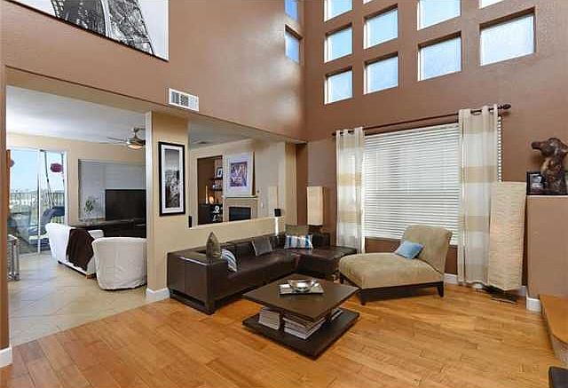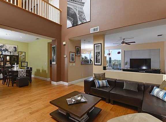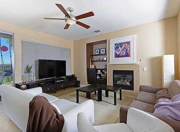 A rare view home that sits atop the upper rim of Poinsettia Heights for beautiful sunset views over the canyon and beyond. The largest model built in the development, this 4 BD/2.5 BA home has been nicely upgraded with a completely remodeled kitchen, custom paint, hardwood and large format tile floors. Built in custom lighting features scene lighting with variable range dimmers that allow for ample light and help set the mood. Kitchen and family room open to the backyard, BBQ and views beyond.