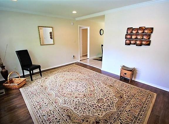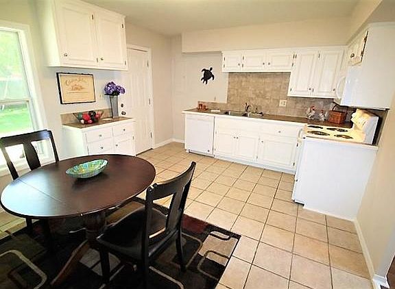 4 BR - 3 w/ a bathroom + 2 w/ a bathroom/laundry room. Huge eat in, ceramic floored kitchen open to the living room in the middle. Dishwasher, range and microwave have never been used. Big master bedroom and all bedrooms have new carpet. Fenced in yard with cement board siding wrapped all around the house. Newer driveway doubled for trailer or additional parking on the side of the house.