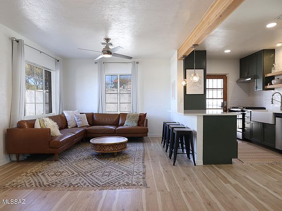 This wonderfully remodeled and exceptionally cared for home is a true gem! Charming bungalow features open concept kitchen, beautiful modern finishes, functional and flowing floor plan, two living areas, laundry room inside with storage, lovely street appeal and much more! The lot is adjacent to the ally so there is a potential for an ADU or a casita. Excellent Central location, close proximity to the UofA, Banner UMC hospital and various amenities. Sewer line has been inspected and repaired, roof and termite warranty in place, annual Centricon service performed 1/16/24, all clear. Easy to show, this one will not disappoint!