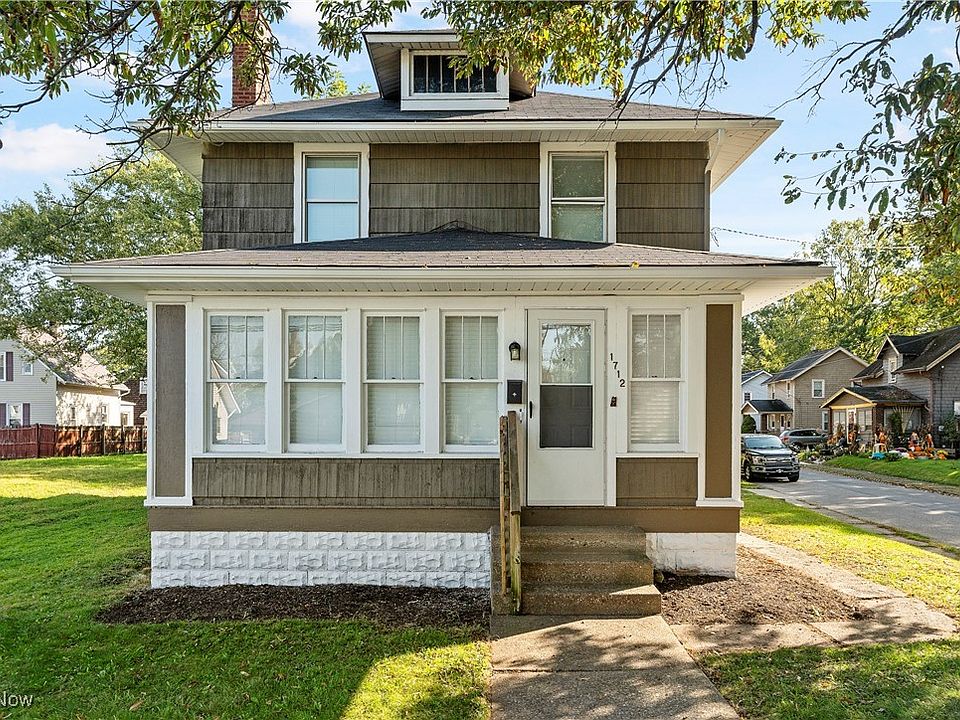 Welcome to this beautifully restored 1924 Colonial home, blending historic charm with modern elegance. Nestled on a corner lot, this home offers both privacy and curb appeal. At the front of the home, a sunroom provides a private retreat bathed in natural light. The main level boasts a bright, spacious kitchen with stainless steel appliances, stunning marble countertops, a large island perfect for entertaining, and a bar area for added convenience. Adjacent to the kitchen is a spacious living room, complete with a wood-burning fireplace, ideal for gathering on chilly evenings. You'll also find a laundry area and a half bath for guests along with a convenient mudroom that leads directly to the back yard and driveway. Upstairs, the hallway features a large linen closet for ample storage. The three well-sized bedrooms offer comfort and charm, while the beautifully updated full bathroom showcases a shower/tub combo with tile detailing, a dual sink vanity with bronze finishes, and a modern yet timeless design. The attic, measuring 23x20, remains unfinished and offers endless possibilities for expansion or extra storage. The 26x23 unfinished basement includes a 10x8 storage room, providing even more space to organize and customize. This home includes a parking pad for added convenience and a backyard with just the right amount of fencing for privacy while maintaining an open feel. Don't miss your chance to own this beautifully renovated home! Schedule a showing with us today!