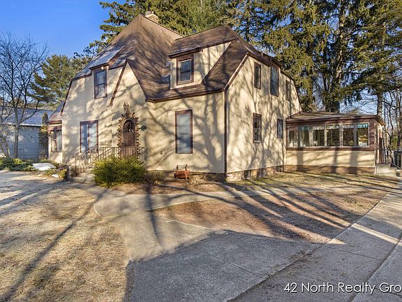 Do not miss this quality-built, character driven Tudor style home in a much-desired area of Norton Shores. Built in 1932 with much of the homes original character preserved. Nicely situated on a mostly fenced, .75-acre lot within walking distance to Mona Lake, this home is perfect for family entertaining during all seasons of the year. Recently updated kitchen and baths, remodeled staircase and entry with Mosiac tile flooring, refinished hardwood flooring, fresh paint in many rooms and custom ceilings in kitchen and TV room, which could be 5th bedroom. Maintenance updates include new furnace and A/C in 2019. New roof and water heater in 2021. Exterior paint in 2022. Rear yard has .4 Acre fenced in and includes a basketball court! Do not miss this one-of-a-kind Norton Shores home!