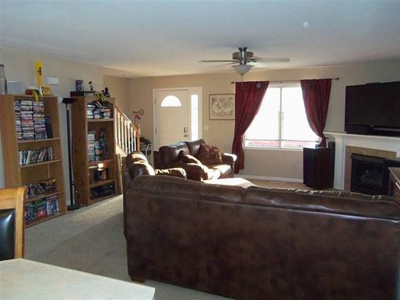 One owner townhouse built in 2007! Open floor plan. Tiled kitchen with stainless steel appliances. Living Room w/corner Fireplace (with blower) w/entertainment shelf, 1st floor laundry. Finished basement with in-ceiling surround sound, custom bar with built-in gaming system, kegerator and refrigerator. Basement has half bath. Gigabit Ethernet wired to the BR's and LR. 2+ car detached garage with extra storage. Pool w/clubhouse, workout facility and saunas. (basement 4 HDTVs negotiable)