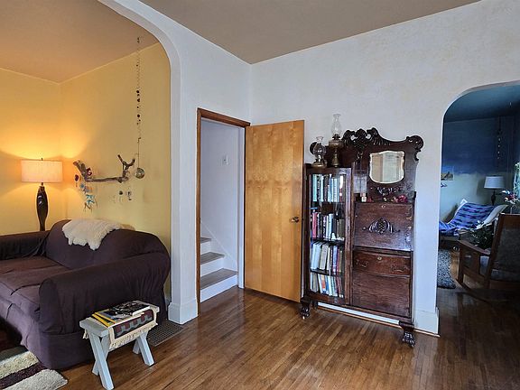 Covered front porchCute brick patioArched doorwaysWalk-in attic accessSeasonal flowers and plantsSpacious kitchenReal hardwood floors