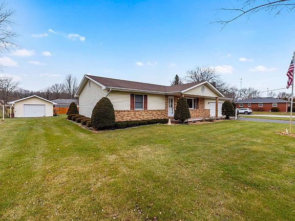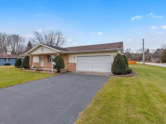 Cute and cozy brick and vinyl ranch located on a large corner lot. The kitchen offers an abundance of oak cabinets that are in excellent condition and a breakfast bar as well. Both bedrooms are spacious, with the main bedroom having direct access to the bathroom and the second bedroom offering a large walk-in closet. Off the dining area are sliding glass doors that lead to a 14 X 12 deck, perfect for cook outs. The 16 X 20 detached garage is finished and has electrical service. Property is nicely landscaped and provides a sprinkler system. Located close to parks, schools and churches.