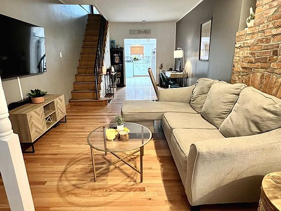 Welcome home to your new 2 bedroom, 1 bath rowhome with central A/C in the heart of desirable Riverside Park. As you enter you will feel the Baltimore charm right away. Main level features open floor plan with wood floors and bay front window where you can have natural light enter from front to back of home. The living area with brick accent wall flows into a dining area which leads you to your generous sized kitchen. Take the wide steps upstairs to find 2 big bedrooms with ceiling fans. Large full bath with standing shower and soaking tub. Additional space upstairs currently used as closet but could be an office, storage space, or converted to another bedroom or bathroom. Unfinished lower level has built in storage shelves with bounds of possibilities awaiting your finishing touches. Enjoy those beautiful Baltimore days and nights in your fenced-in back patio off the kitchen. Plenty of space to make it a parking pad if desired since there is a wide alley directly behind the house. Parking available in front of the house along the tree-lined street. Property being sold As-Is. Make this your new home or add this gem to your rental portfolio. Currently rental occupied until June 30.