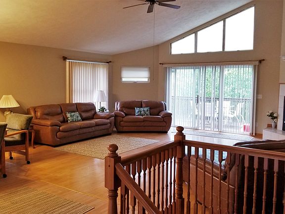 Feel like you are on vacation year round in this beautiful lake community with this custom 4-bedroom, 3 bath home, with tons of natural light and breathtaking views. The main floor master bedroom has access to the enclosed deck, his and hers walk-in closets, and an attached master bath with separate shower and oversized tub. Kitchen has plenty of storage and a breakfast bar which opens up to a spacious dining/living room space with a vaulted ceiling. Laundry room located on main floor. Lower level offers 940sqft of finished space which includes a family room, 2 bedrooms, and 1 full bath, and a walkout to the covered patio. Estimated 800sqft of unfinished storage area/utility room