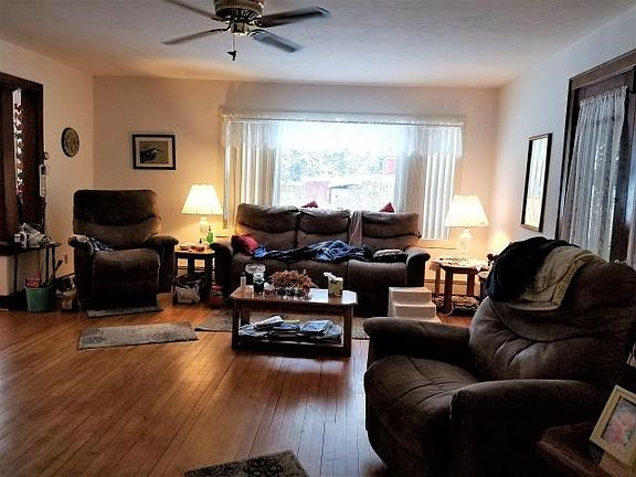 Mercer - Large Country-Style home having 4 bedrooms, 2.5 baths, large living room with maple hardwood floors, solid french doors that lead to the huge 3 season glass enclosed porch that spans entire front of the home. The main level also features a dining room with hardwood floors, kitchen, master bedroom with bathroom, and enclosed back entry porch. Upper level has 3 bedrooms, extra room, large full bathroom, and hemlock hardwood floors throughout. There is a full basement with unfinished rec room, laundry area with wash sink, half bath, work shop area, with outside entrance perfect for coming in from ATVing or snowmobiling & removing your gear. Serviced with duel heating system of natural gas hydronic heat & outside wood furnace system, drilled well. There is plenty of room for your vehicles or toys in the 24 x 24 garage, has black top driveway, 1.5 acres of large level yard and adjoins State Land. Located on ATV, snowmobile, bike trails & located 3 miles south of Mercer.