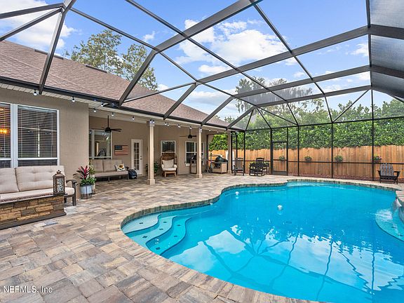 WOW! Don't Miss The Video! This Gorgeous Home is in a Gated Community with access to Fleming Island Plantation Amenities, beautiful nature trails, and a community dock with stunning views of the St Johns River. It is truly 'Better Than New' and showcases upgrades providing a move-in-ready experience. Step inside to find a beautiful combination of engineered hardwood & custom tile flooring that flows throughout the main living areas. The exterior has been enhanced with durable elastomeric paint, ensuring lasting beauty and protection. The kitchen features the practicality of a gas stove, and you'll enjoy a welcoming gas fireplace in the family room creating a comfortable atmosphere. Enjoy worry-free living with a new roof in 2021, new A/C in 2023, and a new pool pump. The sparkling screened-in pool is the centerpiece of the outdoor living space, perfect for relaxing and entertaining. This home is gorgeous inside & out, offering a blend of comfort and style in a sought-after location.