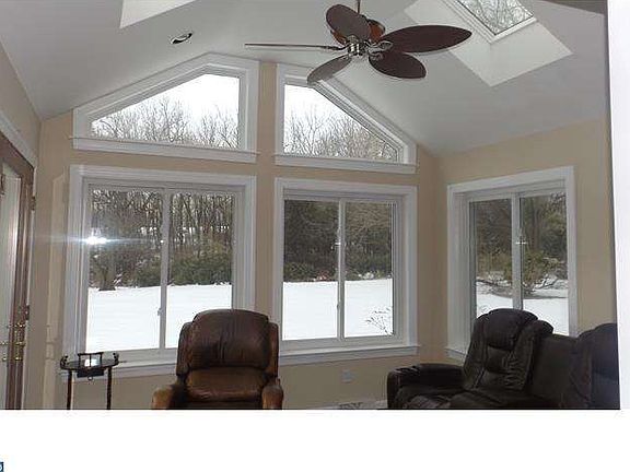 Lovely Brick front Rancher Features Large Living room with Hardwood flooring full wall Brick Fireplace with raised hearth & Gas Logs. LR opens to formal dining room with Hardwood floors 1/2 wall to Eat in kitchen with custom ceramic floors, Newer Solid Oak Cabinetry with ceramic backsplash,Granite counter tops and stainless steel under mount sink. Cerran top range and overhead microwave. Beautiful Family Room Addition off Formal Dining room with cathedral ceiling and Full wall of oversized Double insulated Casement windows with large triangular transoms accenting the cathedral ceiling. Large full glass French door to pressure treated landing. Large mud room off kitchen leading to 2 car side entry garage and separate laundry room. Ceiling fans T/O. Newer heater and C/A New well tank. Back yard offers wonderful tranquil view of tree lined back yard. Ceiling fans T/O. Newer Hall bathroom with new double shower with seamless glass doors, new vanity toilet and new ceramic tile floor. Unfinished basement