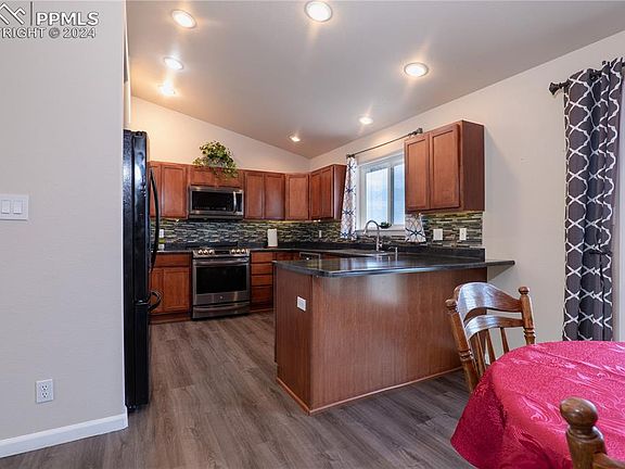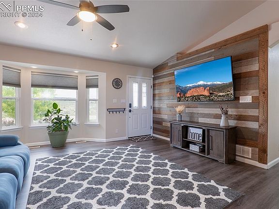 This is an IMPRESSIVE stucco ranch-style home on a 1-acre lot in Pueblo West! You will be greeted by vaulted ceilings and NEW laminate flooring that accents the homes modern aesthetic featuring a rustic wood accent wall in the family room. The well designed open-concept living creates a flow between the living, dining, and kitchen space. The well appointed kitchen has a breakfast bar, large pantry and abundant cabinetry storage with EXTENSIVE COUNTER SPACE. Enjoy the convenience of the laundry room on the main level with shelving and a closet. Plush carpeting envelops two of the three spacious bedrooms. There are several quiet ceiling fans.The OVERSIZED (24x17) 2-car TANDEM GARAGE provides ample space for a workshop area to wrench on your cars or for storing your outdoor recreational toys, as well as the addendum gravel driveway which will fit an RV and more. One of the features of this property is the enormous unfinished basement which offers endless possibilities for customization. There is plumbing in place for an additional bathroom, as well as enough space to accommodate 2-3 additional bedrooms. Enjoy a serene living experience in this exceptional neighborhood that has MOUNTAIN VIEWS offering endless opportunities for comfortable living and growth. Turn key, quick move in. Information deemed reliable, but not guaranteed. Buyer to verify square footage. Minutes to Fort Carson Army base and Pikes Peak International Raceway as well as shopping and restaurants.
