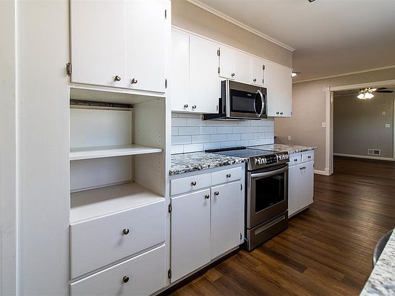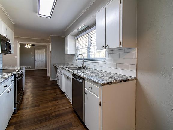 Located in Shawnee, Oklahoma, this move-in-ready 3-bedroom, 2-bath home sits on an almost 1/4 acre corner lot with easy access to I-40 — APX 30 mile commute to Tinker AFB and conveniently close to OBU (Oklahoma Baptist University), making it an ideal choice for families, professionals, or students alike. Inside, you’ll find fresh updates throughout, including newer appliances, paint, roof, and flooring — all completed within the last 3 years! The open living spaces feature laminate wood-grain flooring, while each bedroom offers soft carpeting and ceiling fans for comfort. A flex room located next to the garage provides endless possibilities — perfect for a home office, formal dining area, or playroom. The kitchen is a dream with ample counter space, hard-surface countertops, a generous pantry, and a built-in breakfast nook for casual dining. Additional highlights include built-in shelving, a quiet laundry room tucked away from the bedrooms, and garage storage for tools or hobbies. Outside, enjoy your spacious yard with a welcoming front porch and an oversized covered back patio — perfect for entertaining, relaxing, or hosting weekend cookouts. This home truly checks all the boxes — location, comfort, and style! Schedule your showing today and come see why this Shawnee gem is the one you’ve been waiting for.