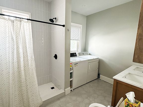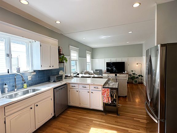 This stunning top-floor apartment combines modern updates with abundant natural light. Step inside to find brand-new hardwood floors throughout and a completely renovated bathroom featuring double sinks and in-unit laundry for convenience. The home offers three oversized bedrooms plus an open-concept kitchen and living area designed for entertaining, highlighted by quartz countertops and thoughtful finishes. Two private outdoor spaces. Rent includes one private deeded parking space right next to the house.