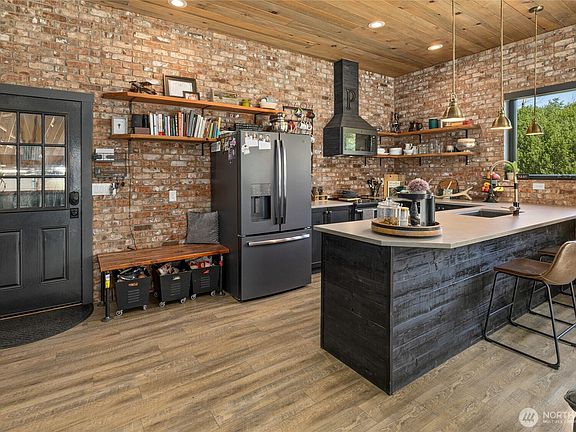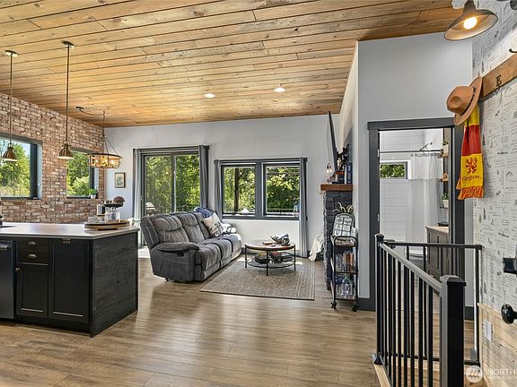 This almost 7.5 acre retreat off Nelson Siding hosts a 40x48 shop with 1600sf of stylish living space. Upper level features a loft-style great room w/brick accents, quartz counters, & an electric fireplace. Step out onto the deck for peaceful outdoor dining! There is a darling bunkroom, full bath & larger bedroom w/peaceful views. Lower level offers a rec room, home office, sauna, home gym, add’l bedroom w/loft, & a tiled ¾ bath w/stone wall shower. Check out the designer touches & craftsmanship throughout, like the blue pine ceilings! Room to add your dream home to this serene rural setting, power is even in place. RV Parking, 60' of covered lean-to parking!!