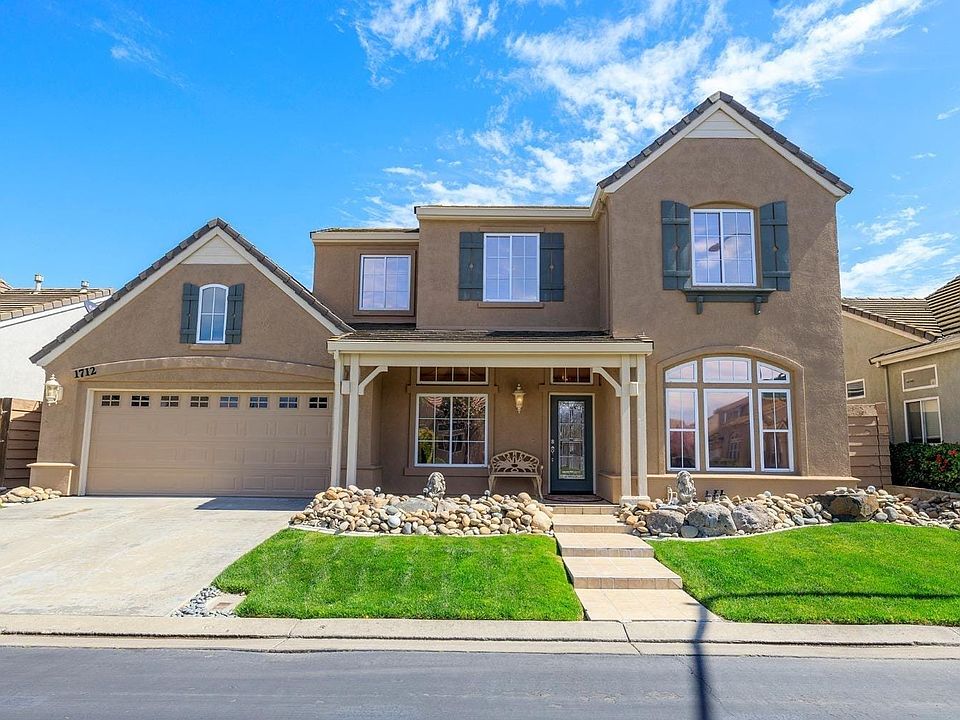 Prestigious Adrianna Gated Community, gorgeous two story, main level with spacious and luxurious master suite, double sinks, soaking tub, separate shower, walk-in closet, patio slider to back patio. Separate living and family rooms with custom wood flooring, cozy gas log fireplace, high ceilings downstairs, formal dining with built-in China cabinet, a cook's' kitchen with Corian counters, large island with breakfast bar, breakfast area, pantry cabinets, coved ceilings. ceiling fans, recessed lighting, French door to shaded back patio, low maintenance yard with a pergola and storage shed. Upstairs features two bedrooms, a large loft (could be a 4th bedroom), laundry room with sink and cabinets. Close to schools, parks, shops and dining! You will love this home! 2024-10-29