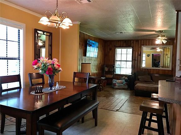 This cute home sits in a beautiful country setting on a private road. The three bed, two bath home has an open concept and two living areas. Outside you will find a spacious front porch and a back porch to sit and enjoy the peace and quiet of your secluded yard. Flood zone X.