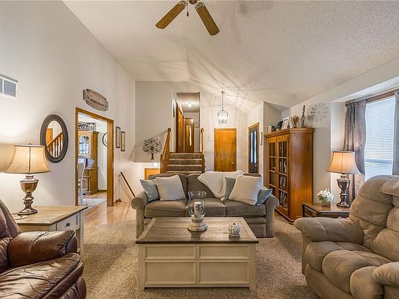 This side to side split home in the Regency Park subdivision in Kearney has so much to offer! A well maintained property with all new interior paint main and second levels and newer roof checks all the boxes. Large eat in kitchen with oak cabinets. Beautiful wood floors in the main area and carpeting in the family room and bedrooms. Vaulted ceilings in the great room. Spacious master suite with detailed inset ceiling and shower. Head downstairs to a spacious recreation area and bonus room and office or nonconforming fourth bedroom. Almost new appliances - stove, dishwasher, garbage disposal, water heater less than 4 yrs old, new heating system & sump pump (year old) and vinyl siding. You can’t go wrong with this fantastic find in the Kearney school district.