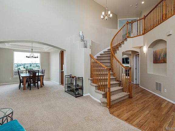 Ultimate views and wonderful privacy in Castle Rock's Sapphire Pointe neighborhood! Welcome to this super clean move in ready 3 bedroom plus office and loft area, 3 bath home with all new paint throughout! Shows like a model with all new refinished hardwood floors, all new lighting fixtures, sweeping spiral staircase and vaulted ceilings! The open concept kitchen/family room area over looks the backyard with a stamped concrete patio area perfect for outdoor entertaining. The chef's kitchen is complete with double ovens, gas cook top, eat up counter, center island, separate pantry and sunny nook with newly refinished hardwood floors. Ascending the spiral staircase leads you up to the huge master suite w/double door entry, sitting area w/dual sided fireplace & en suite master bath. Completing the 2nd floor are 2 additional bedrooms, full bath, loft and separate linen storage closet. The master closet as well as both secondary bedrooms have custom closet organizers & closet lighting. Main floor office has french door entry & fresh paint and is adjacent to the main floor half bath. There is a separate laundry room complete with storage cabinets & utility sink. The full unfinished basement is ready for your touch. Don't wait, see this home today!