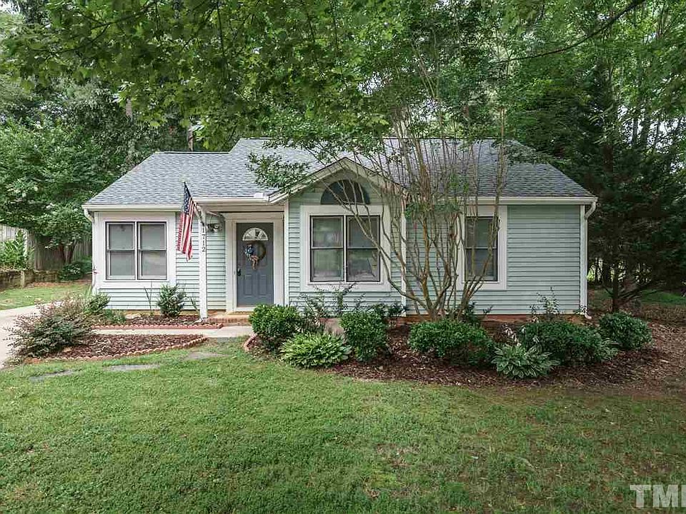 This home is stunning! An open floor-plan welcomes one inside this peaceful home filled with natural light, while the outside spaces are equally enchanting. Cathedral ceilings add to the spacious family room and kitchen areas, and new carpet graces the generous master bedroom as well as the other two bedrooms. (Roof and carpet replaced in 2017!). The seller put a lot of attention into the huge backyard - see stone patio and fire pit near the lovely oak tree. Minutes away from NCSU and downtown. No HOA!