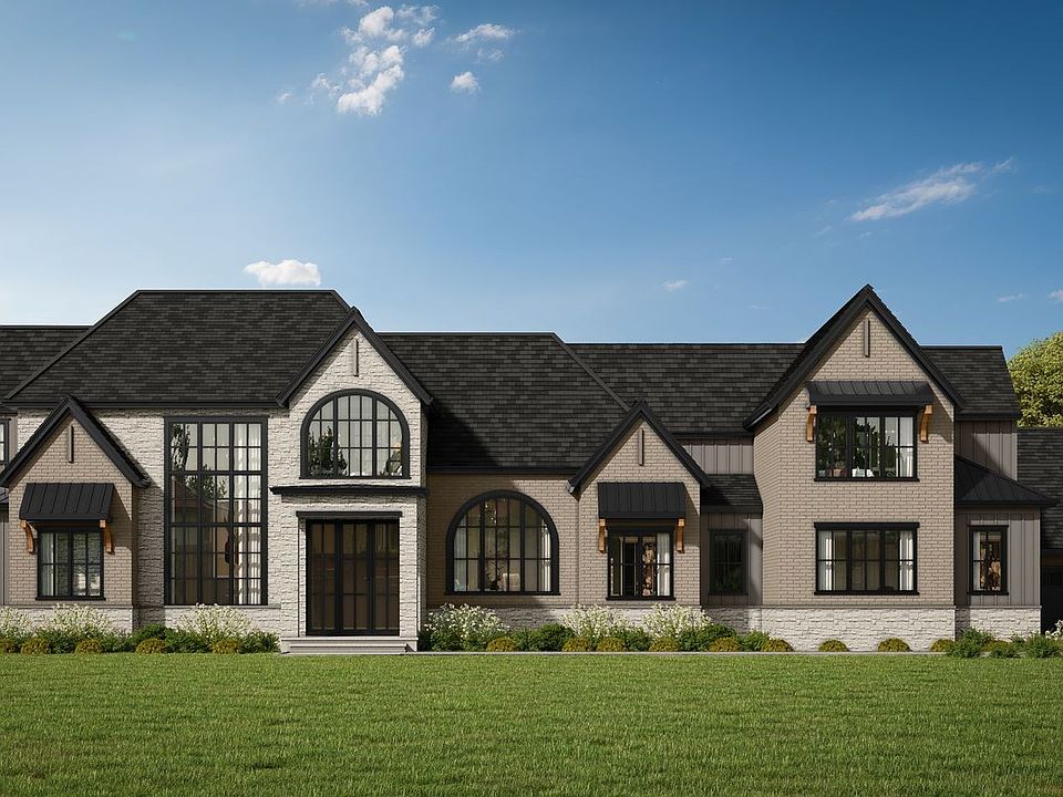 Striking curb appeal, seamless sophistication, and unparalleled customization opportunities await at this exceptional Hidden Valley residence, nestled within the exclusive gated community of Echo in Brentwood. Designed by Jack Herr, this bespoke new construction sits on a private, tree-lined 1-acre lot and offers a rare opportunity to personalize every detail to your exact vision. The home's architecture is defined by its elegant arched windows, creating a timeless façade that sets it apart from the moment you arrive.