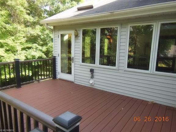 Scenic wooded cul de sac lot and a great value ! Very large beautiful colonial with many custom upgrades on a private wooded lot that is surrounded by the WEST CREEK RESERVATION ! This is by far the finest lot in the area ! This spacious home offers a huge kitchen with custom amish built cherry cabinets and stainless appliances ! There is plenty of oak natural woodwork, crown molding and 6 panel doors ! 20 x 18 master bedroom ! Spacious 1,300 s/f finished walk out basement that walks out onto a covered patio looking over the wooded park ! Fantastic 1st floor family room with cathedral ceilings and massive pella windows that you can enjoy all the views of the park and walking trails from the family room or open the door and walk out to the 2013 custom built Timber Tech maintenance free multi level deck with step and deck lighting ! There is a custom built 16x12 shed that was built in 2008 with concrete slab , pull down steps for 2nd floor storage , electric all in conduit, over head door and service door ! 2009 High eff. Furnace and Central air ! If your looking for a great home with a walk out finished basement on a private wooded lot surrounded by park land then take look at this Home !