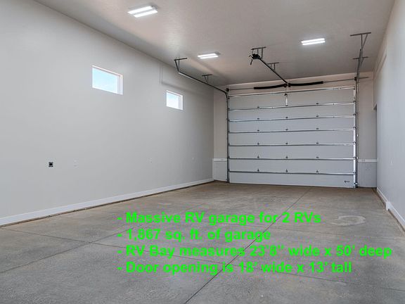 - Parking features: Attached, Extra Depth, Extra Height, Extra Width, Garage Door Opener, RV Garage, RV Access/Parking