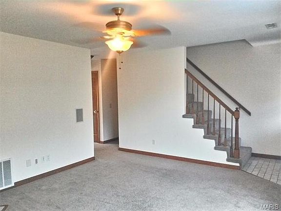 Wonderful location! Beautiful updated town home close to everything. Newer carpet throughout, living room features a wood burning fireplace, speakers in the walls, 1/2 bath on main floor, dining room and kitchen are open to each other with a breakfast bar, newer appliances, newer HVAC, main floor laundry, enjoy your morning coffee on the deck or relax in the evenings in the fresh air. Upstairs master bedroom has pocket door to full bath, double sink, Both bedrooms are extra large and spacious. Plenty of closet space. Please call CSS to set an appointment 314.371.2100