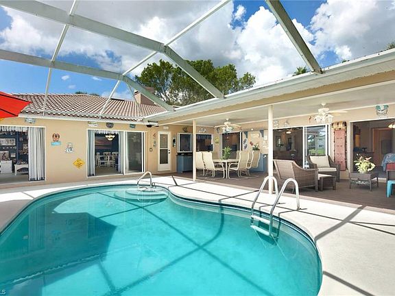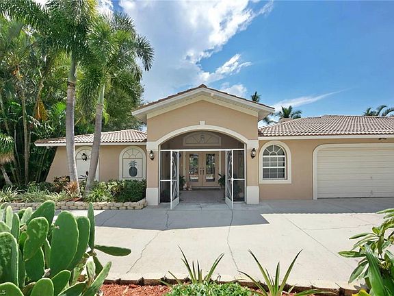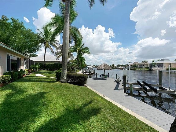 This 5 bedroom 4 bathroom beautiful pool home with over 3800 sq feet of living area is located on a wide sailboat access canal just minutes by boat to the river leading to the Gulf of Mexico. Circular driveway,work shop in garage,3 zoned ac system,20,000lb boat lift with Tiki Hut & 30' dock. Gorgeous breath taking views with popular sought after Southern rear exposure, watch all the boat traffic, relax and fish. Heated pool & hot tub, plenty of room on lanai to entertain & a full pool bath. Huge open family room with large picture window for spectacular views overlooking the water. Inside fireplace with beautiful mantle that converts from wood burning to electric. tons of storage space in attic and walk around ability. Alarm system is hardwired & wireless w/cameras. Master bedroom features walk in closet & shower, dual sinks & located on opposite side of the house from the private wing of the additional 4 bedrooms. Located on a oversized three lot site with 16,978 sq feet of land just 10 ft shy of 4 lots or 1/2 acre. If you are looking for a lot of land and space both inside and outside on prime waterfront, then this is the house for you!