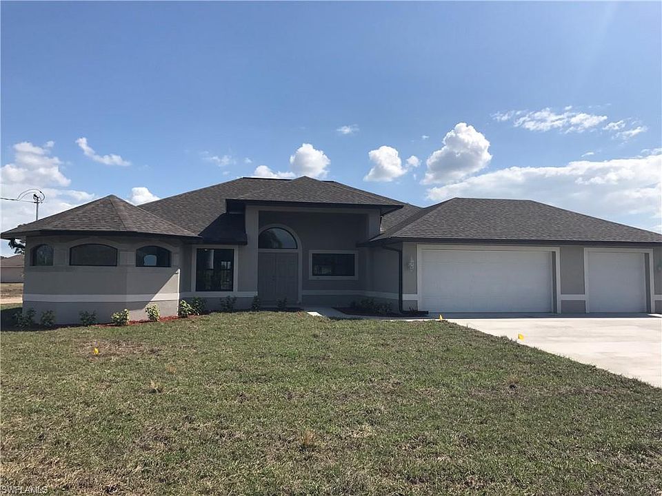 BUILT 3 YEARS AGO, THIS HOUSE IS AS NEW ** AND IT IS HUGE ** GULF ACCESS ** 3 CAR GARAGE ** OVERSIZE LOT ** BEAUTIFUL VIEW ALONG THE ENTIRE CANAL ** 4 BEDROOMS ** 3 BATHROOMS ** PLUS DEN ** PREFERRED SOUTHERN EXPOSURE ** 2 MASTER SUITES ** ONE IS DESIGNED AS A MOTHER IN LAW SUITE WITH SEPARATE ACCESS AND A SMALL KITCHEN ** IT HAS ACCESS TO THE 3RD CAR GARAGE, WHICH IS SEPARATE ** HIGH CATHEDRAL CEILINGS & ENTRANCE ** GRAND MASTER BATH WITH WALK THROUGH SHOWER AND HIS AND HERS CABINETS ** GRANITE COUNTERTOPS IN ALL BATHS AND KITCHEN ** MODERN STYLE 42" CABINETS ** STAINLESS STEEL APPLIANCES ** UNDER TRUSS PATIO ** PLACE FOR POOL (SEE ATTACHED PLAN) ** CONCRETE DOCK ** OUTDOOR SHOWER ** MANY NEWER HOMES AROUND ** TINTED WINDOWS AND SLIDERS ** FAST ACCESS TO PINE ISLAND RD WITH MANY RESTAURANTS AND SHOPS AND MANY MORE TO COME **