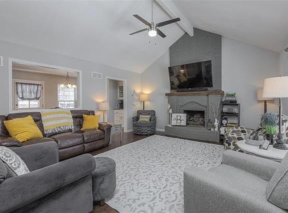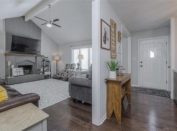 Spacious and open floor plan with updates throughout! Entire main level has gorgeous, engineered hardwoods! The large Great room offers floor to ceiling fireplace that opens to the kitchen with subway tile backsplash, granite counter/breakfast bar and stainless appliances! The dining area has a built in coffee/wine bar with granite counter and walks out to the deck and level backyard with privacy fence-perfect for grilling and entertaining! Master suite offers vaulted ceiling and ceiling fan and has a private bath with shower and tile floors. 2 additional bedrooms, 2nd updated bathroom and Laundry on the main level! Finished lower level includes a spacious family room with luxury vinyl flooring, wood burning fireplace and a half bathroom. Maintenance free exterior offers vinyl siding, newer windows and New roof! Extra deep garage fits your truck or suv and a workbench. Convenient location close to shops, dining, highways and Top Rated Blue Springs Schools! 2021-03-10