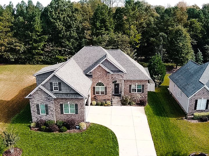 Looking for the perfect home with lots of style, loaded with upgrades and fitted with an outdoor oasis including inground heated pool and covered tiki bar? This home is for you! Full brick & stone exterior on a flat lot with a gorgeous pool and fenced back yard! Huge 4th BR/Bonus room/multi purpose room and bath on 2nd floor. Can be used as a bedroom, bonus room, office space, or all of the above! Upgrades & custom features include a boxed ceiling in the great room with 14 foot ceilings and a stone fireplace and an architectural ceiling in formal dining room, Tile showers in both downstairs bathrooms and jetted soaking tub in master bath. Kitchen equipped with stainless appliances, tile backsplash, work desk and granite counters. Gorgeous maintained lawn with sprinkler system. Tiki Bar has bluetooth speakers and is ready for your first pool party!