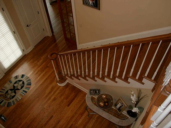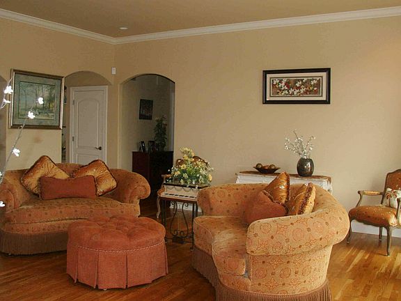 Spectacular views of waterways in gated SAND CREEK estate area make this a prized location with adjacent common grounds with water feature. Solid, spacious all brick home takes advantage of this stunning setting with expansive windows and French doors framing the southern exposure views. Freshly refinished hardwood flooring flows throughout main level's study with extensive built-ins, 2 story entry, formal living w/ cast stone fireplace, family room w/ fireplace plus wet bar with wine fridge ...