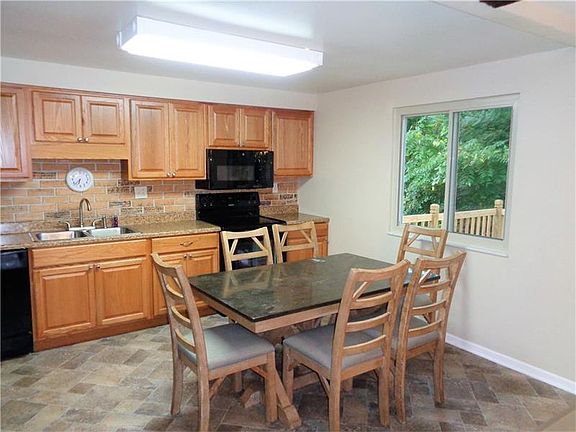 A gem of a home in a fabulous location! This well maintained 3 bedroom, 2 full bath home sits on great lot at the end of the cul de sac of a dead end road in Plum Boro. The updated kitchen is open to the dining and living room area for great entertaining. You will find brand new flooring, in the kitchen, dining room, living room, hallway steps and entrance way. Brand new deck off the kitchen and dining area adds wonderful outdoor living overlooking wooded setting. Master bedroom has its own en-suite bathroom that was just updated this year. New light fixtures throughout the home. Finished basement includes fireplace, two finished rooms, one leading out to patio under the deck. Great space for family room, den, office, etc. Large two car garage with built-in shelving. Brand new vinyl siding and gutters. Large laundry room area with new flooring. Fresh paint through the home. Fenced in yard with shed. HSA Home Warranty. This home is a must see!
