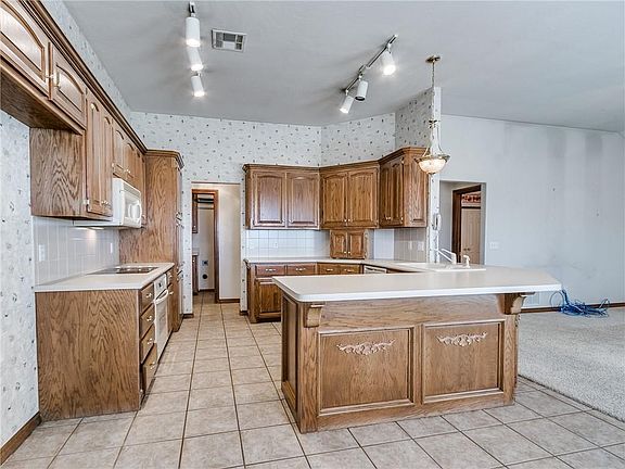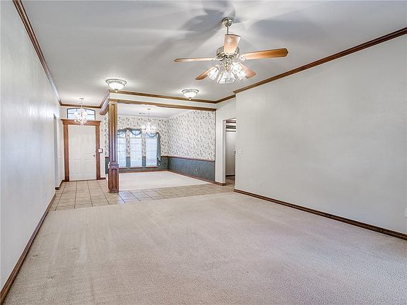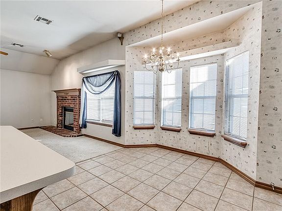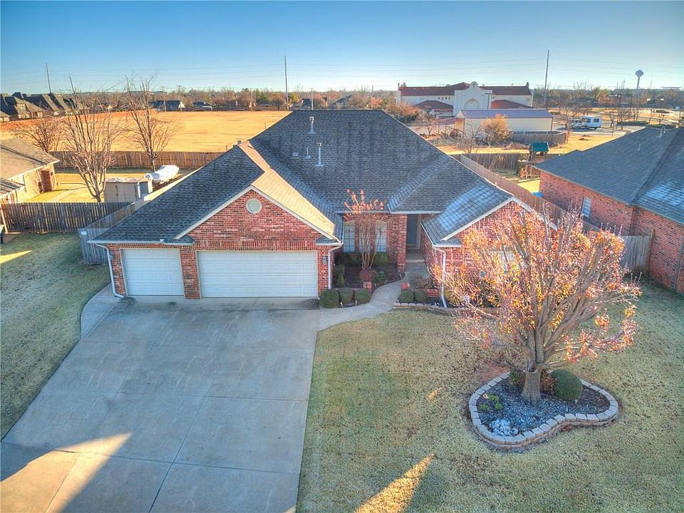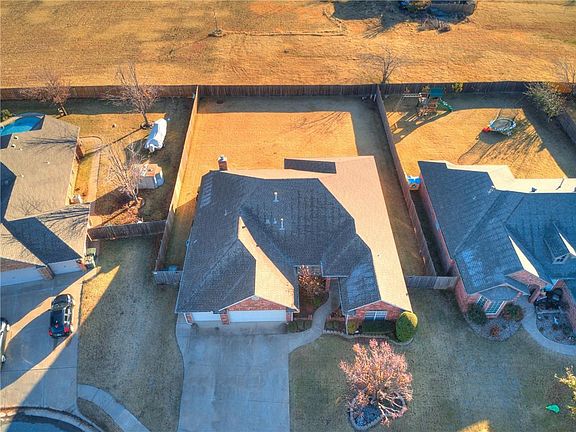 Really quiet neighborhood. Right around the corner from several retail shops and restaurants. Spacious backyard with wood fire pit area and built in propane grill. Great start to a future backyard oasis! Main living room and patio are wired for speakers. Home comes with 2 large family rooms, 2 dining room areas, and private mother in law suite separate from the other bedrooms! Perfect for entertaining! Master bath includes jetted tub and large Australian closet! Large bedrooms with lots of natural lighting. 3 car garage with storm shelter and cable access hook up. Security system and cameras on outside of the house. A/C and water heater have been replaced in the last 5 years